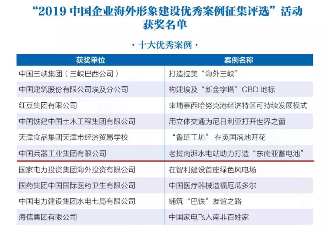 兵器工業集團海外項目榮獲2019中國企業海外形象建設十大優秀案例及卓越社會責任獎 |