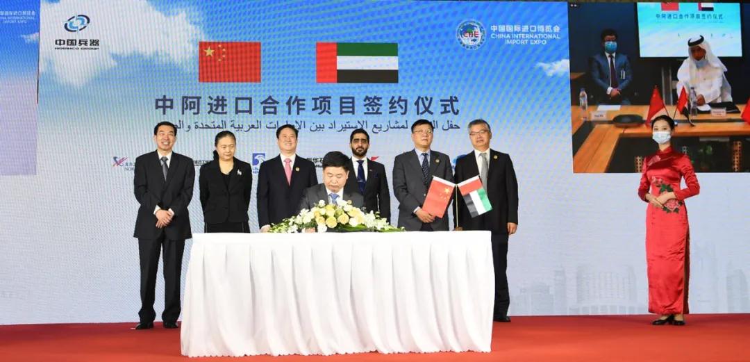 11月4日下午,阿拉伯聯合酋長國&中國兵器工業集團進口合作項目專場簽約儀式在上海舉行。