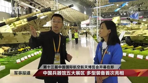 央視《新聞聯(lián)播》報道第十三屆中國航展,著重介紹了VT4主戰(zhàn)坦克,關注航展公眾日中國兵器館情況。9月28日下午央視《新聞直播間》航展特別節(jié)目《藍天盛會》邀請集團公司訪談嘉賓做客直播間對中國兵器館兵器工業(yè)集團展區(qū)等進行1小時直播;9月28日下午、10月2日下午分別對地面裝備動態(tài)表演進行兩場直播。央視《朝聞天下》、《新聞直播間》、《共同關注》、《天下財經(jīng)》、《軍事報道》、《正午國防軍事》、《軍武零距離》等相繼推出集團公司參展裝備的報道。