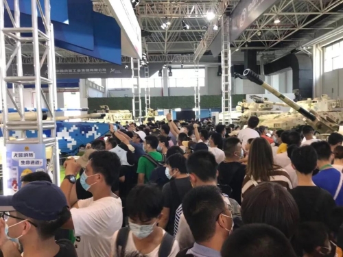 航展期間,備受關注的中國兵器館,參觀的觀眾絡繹不絕。