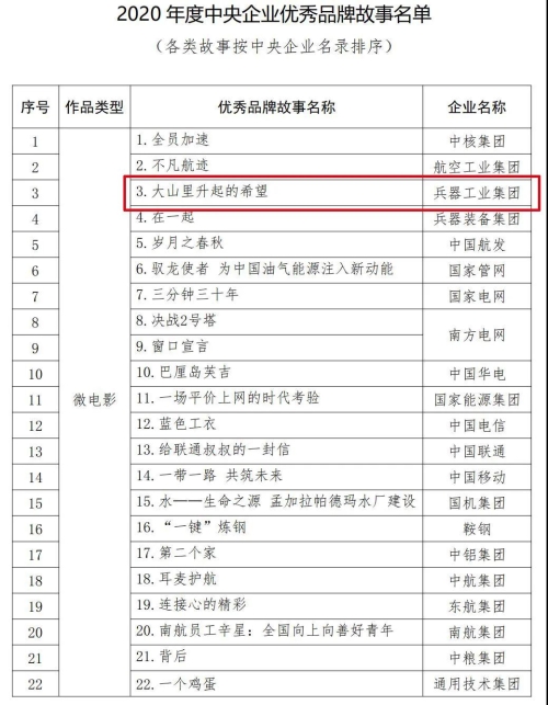 兵器工業集團品牌建設案例入選2020年度100個國有企業品牌建設典型案例和100個優秀品牌故事