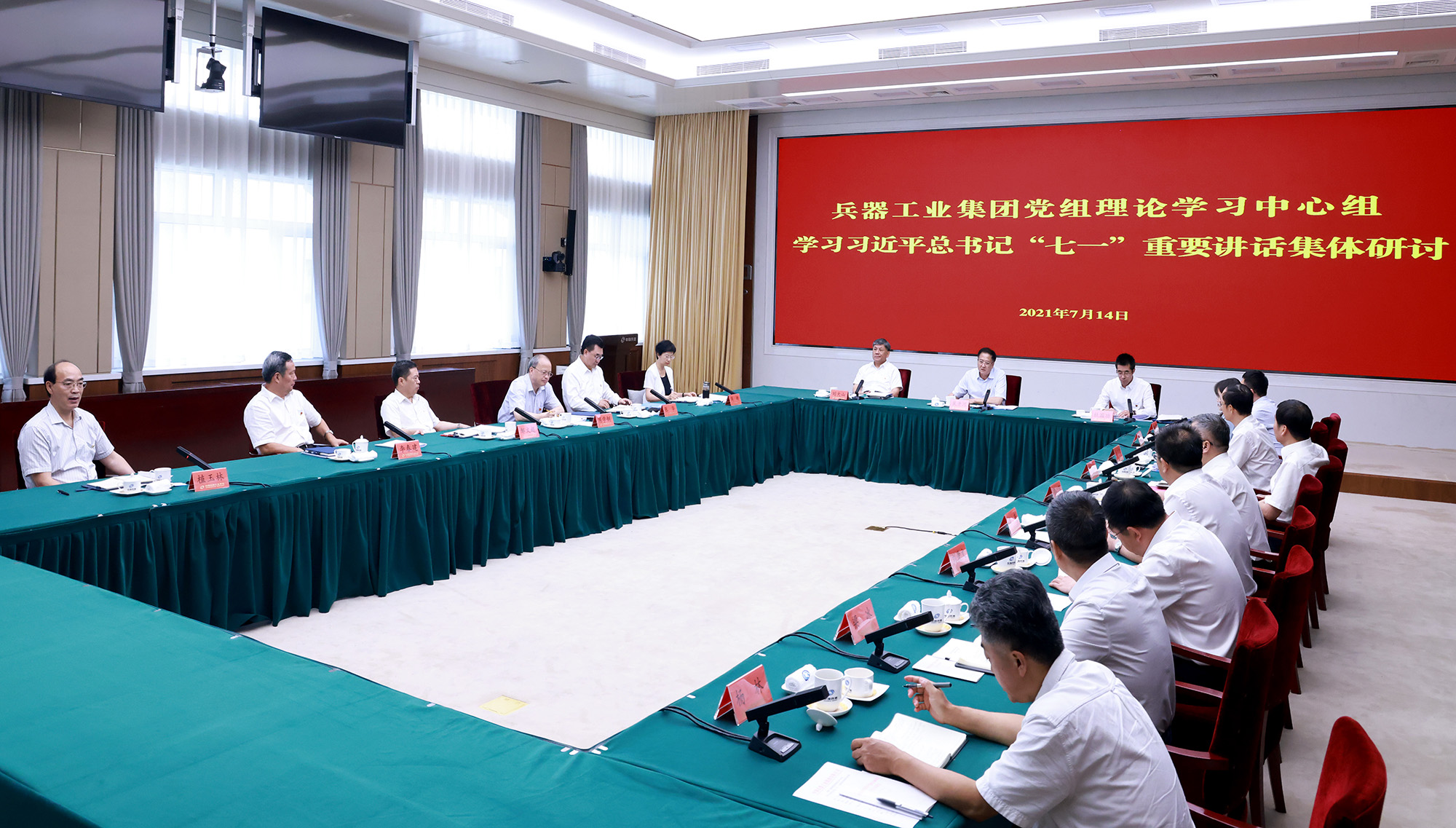 7月14日,中國兵器工業集團有限公司黨組書記、董事長焦開河主持黨組理論學習中心組集體學習研討,學習貫徹習近平總書記“七一”重要講話精神,交流學習心得體會,結合集團公司改革發展實際和各自分管領域、本職工作,研討貫徹落實思路措施。中央企業黨史學習教育第一指導組副組長杜國功列席并作指導講話,集團公司董事、總經理、黨組副書記劉大山,董事、黨組副書記周艦,黨組成員、總會計師張華,紀檢監察組組長、黨組成員陳學釧,黨組成員、副總經理鄒文超、李春建、植玉林參加集體學習研討。