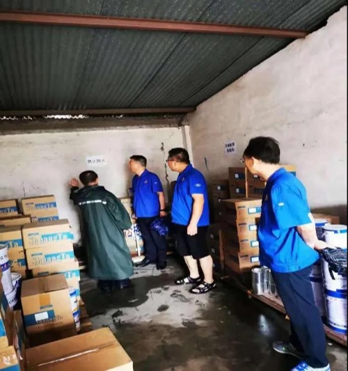 受災單位迅速行動,抓緊時間進行防汛搶修。廣大職工在保證安全的同時,一邊利用沙袋在各通道門口筑起防洪墻防止雨水涌入,一邊利用掃把、拖布快速將灌入車間的雨水進行清除,防止雨水侵入設備,努力降低財產損失。企業負責人連續冒雨深入現場督查防汛搶險工作,對“三防”物資、生產設施設備、可能存在隱患的廠房等進行重點巡查。