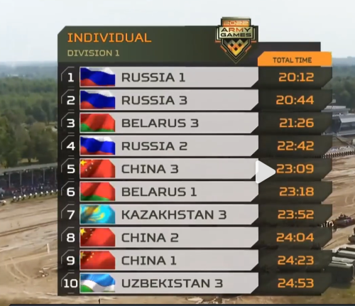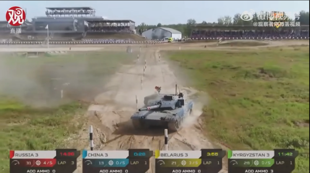 96B坦克助力中國(guó)隊(duì)挺進(jìn)“坦克兩項(xiàng)”半決賽 當(dāng)?shù)貢r(shí)間8月21日 “國(guó)際軍事比賽-2022” “坦克兩項(xiàng)”單車賽第三輪的比拼 在俄羅斯阿拉比諾拉開(kāi)帷幕 中國(guó)參賽隊(duì)駕駛96B坦克 發(fā)揮出色 在單車賽中 中國(guó)與白俄羅斯、俄羅斯、吉爾吉斯斯坦 分在同一組進(jìn)行比拼 比賽中 96B坦克全程發(fā)揮穩(wěn)定 一路疾馳通過(guò) 涉水場(chǎng)、土嶺、車轍橋等各類障礙 順利完成比賽 高射機(jī)槍命中 本屆“國(guó)際軍事比賽”“坦克兩項(xiàng)”項(xiàng)目 共有21個(gè)國(guó)家和地區(qū)的隊(duì)伍參加 中國(guó)參賽隊(duì) 335車組、334車組、336車組 分別取得第五、第八、第九名 以單車賽總評(píng)第二的成績(jī) 成功晉級(jí)半決賽