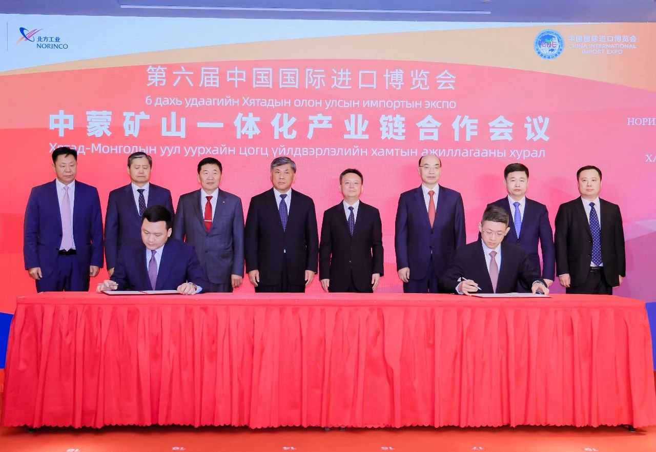 11月4日,中蒙礦山一體化產業鏈合作會議在上海舉行,圍繞蒙古礦山一體化項目拓展延伸上下游產業鏈,共簽署4項合作協議,進一步深化各方互利合作,促進產業鏈融通發展。蒙古國政府部長、國家大呼拉爾委員博爾呼·德力格爾塞汗,駐華特命全權大使圖布辛·巴德爾勒,大呼拉爾委員特木爾陶高·恩和圖布行,部長、國家口岸復興委員會主席布亞·圖力嘎,國務院國資委副主任茍坪,國際合作局局長朱凱,商務部亞洲司司長王立平,中國北方工業集團有限公司總經理、黨組副書記劉大山,副總經理植玉林,內蒙古自治區黨委常委、包頭市委書記丁繡峰,鞍山市委書記王忠昆,鞍鋼集團黨委常委、副總經理、鞍山市委常委王義棟,包頭鋼鐵(集團)有限責任公司黨委書記、董事長孟繁英,中國北方工業有限公司總裁陳德芳出席會議并見證簽約。北方國際合作股份有限公司董事長、黨委書記紀巍主持會議。