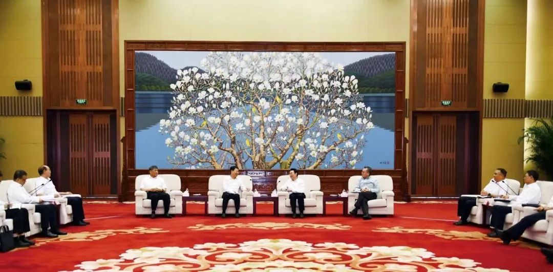 程福波、劉大山同兵器裝備集團(tuán)黨組書(shū)記、董事長(zhǎng)許憲平,總經(jīng)理、黨組副書(shū)記張玉金舉行會(huì)談