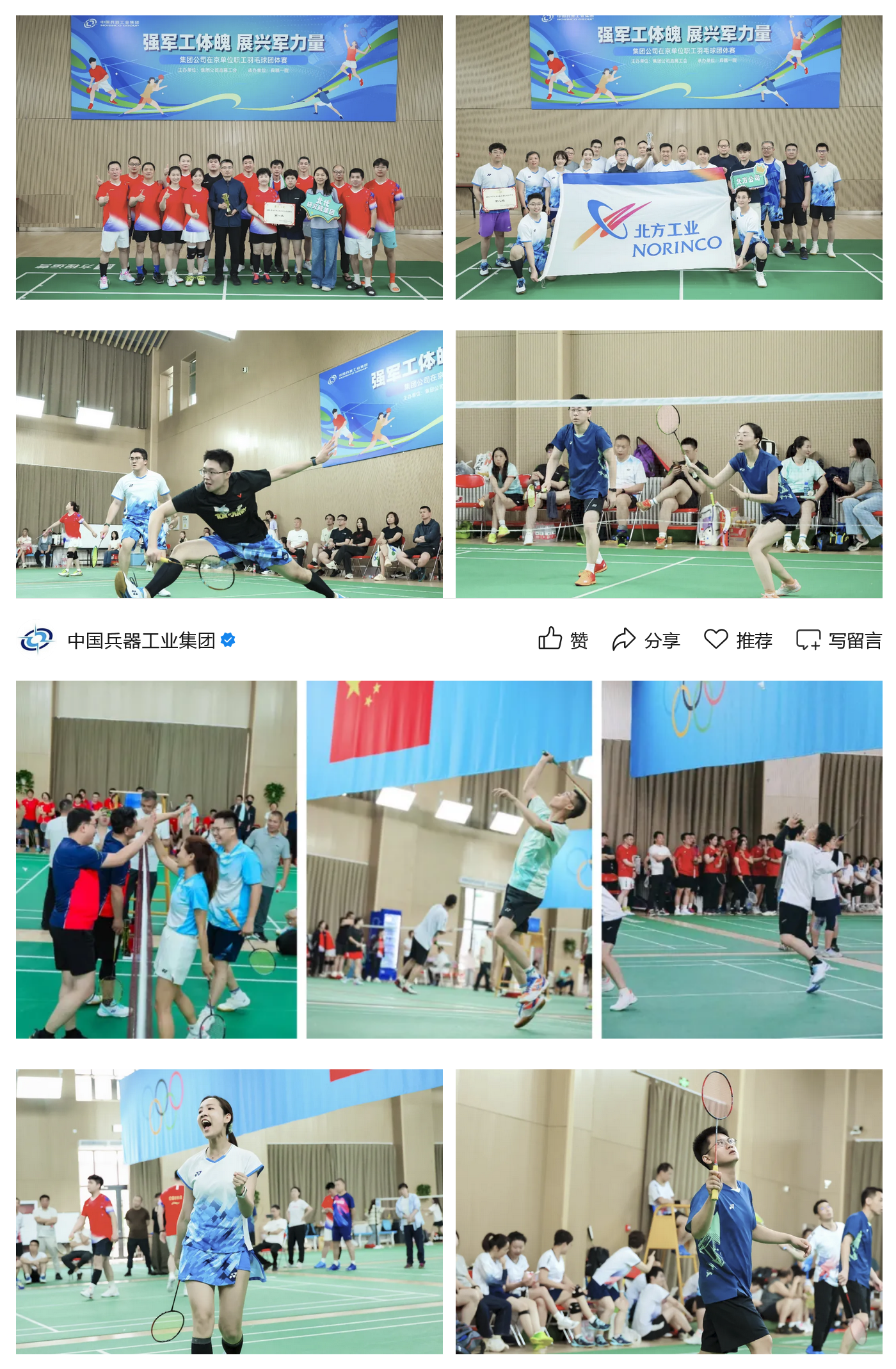本次羽毛球團體賽,是集團公司深化開展群眾性體育活動,貫徹落實“健康中國”戰略的生動實踐,也是打造“健康兵器”的積極行動,進一步促進在京單位職工溝通交流、增進感情、加強團結,激發了廣大職工的向心力凝聚力戰斗力。下一步,集團公司將繼續組織開展形式多樣的文體活動,豐富職工文化生活,塑造職工健康體魄,為加快推動兵器工業高質量發展作出新的更大貢獻!