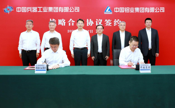 6月27日,中國兵器工業集團有限公司與中國鋁業集團有限公司在京簽署戰略合作協議。集團公司黨組書記、董事長程福波,總經理、黨組副書記馬云雙與中鋁集團黨組書記、董事長段向東,總經理、黨組副書記王石磊進行了座談交流并共同見證簽約。集團公司黨組成員、副總經理閆哲、史志榮;中鋁集團黨組成員、副總經理田永忠、魏成文出席活動。閆哲、田永忠分別代表雙方簽署協議。