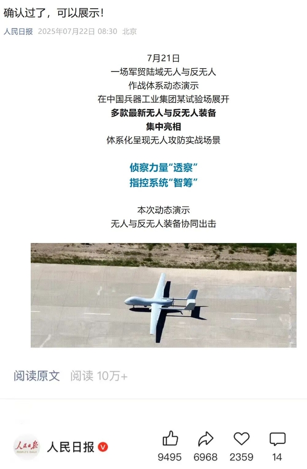 央視新聞客戶端:兵器工業集團陸域無人與反無人作戰體系震撼來襲!搶先看!2025-07-24